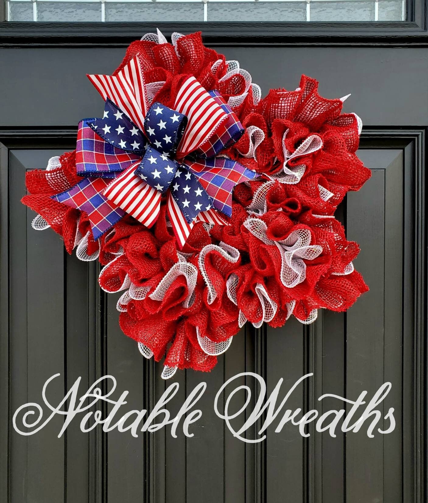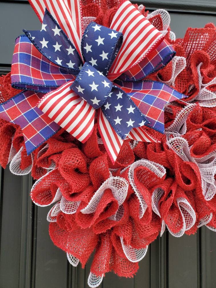 Patriotic star wreath for front door, small patriotic wreath for entryway, Fourth of July wreath, independence day wreat