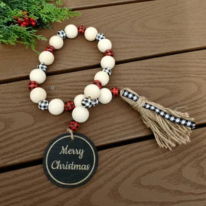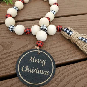 Christmas wood bead garland for tired tray, buffalo check head garland, merry Christmas garland