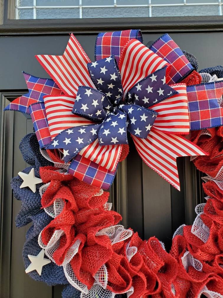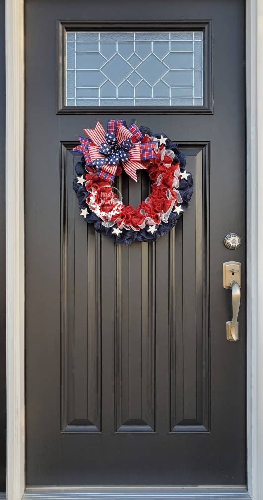 Patriotic American flag wreath, Fourth of July wreath for front door, Patriotic wreath, Americana wreath, American flag wreath, double doors