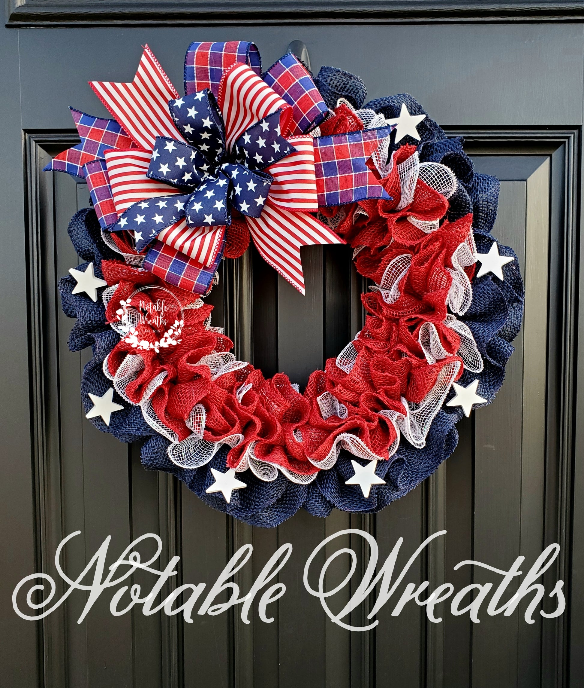 Show your American pride with this beautiful "Stars and stripes" wreath.