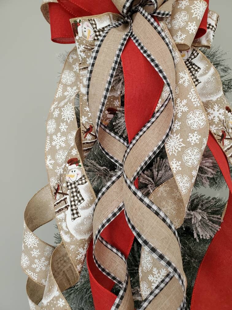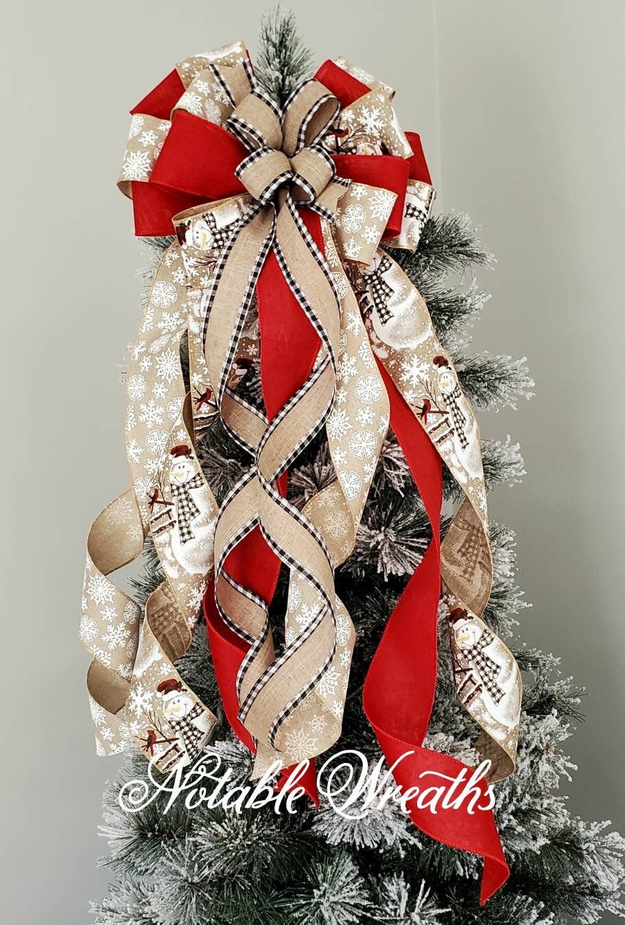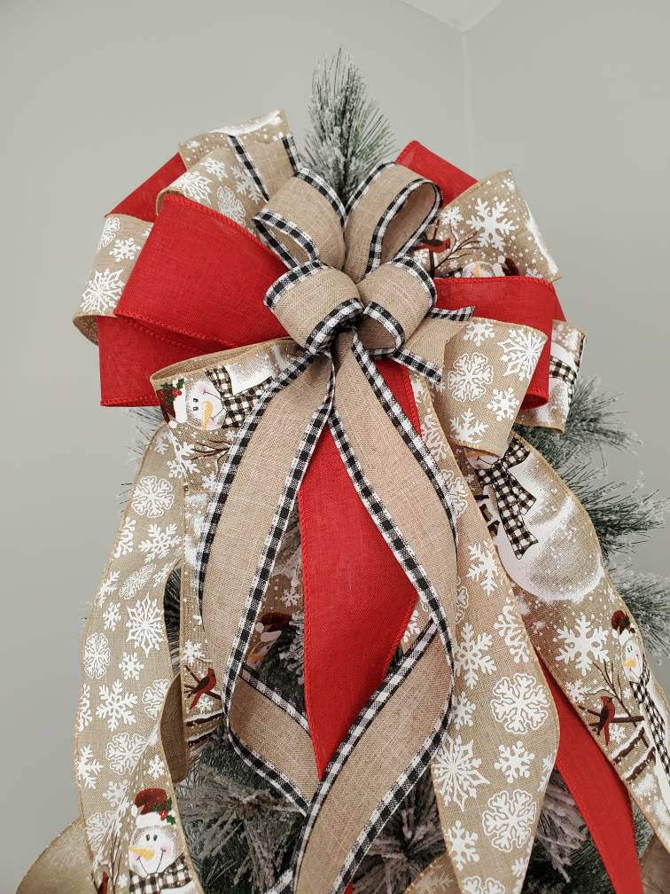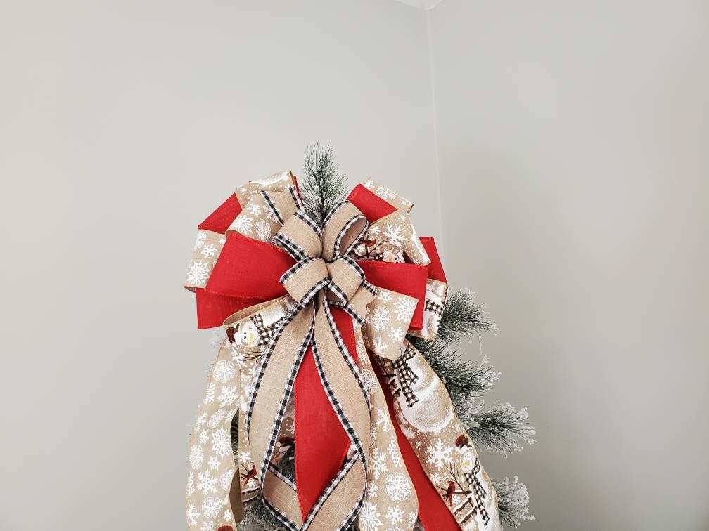 Snowman Christmas tree topper, Christmas tree topper bow, snowman bow, snowman decor, red tree topper bow